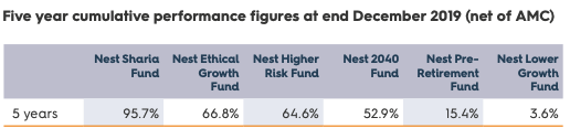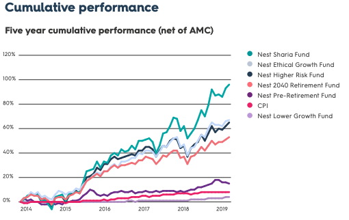 In 5 years Sharia grew by 966 compared to 606 in the High Risk fund. NEST retirement funds appropriate choice Moving beyond the default strategy - the DWP guidance is specific about the need for there to be options beyond the default. Nest has seven funds to choose from two of which are reserved for those that are close to retirement. Those who opted for the lower-risk fund only saw returns of 04 in line with the options benchmark return both last year and since the funds inception.